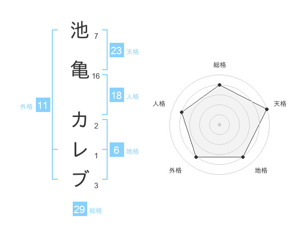 池亀 カレブさんの総格は29画の4点!