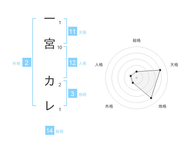 一宮 カレさんの総格は14画の1点!