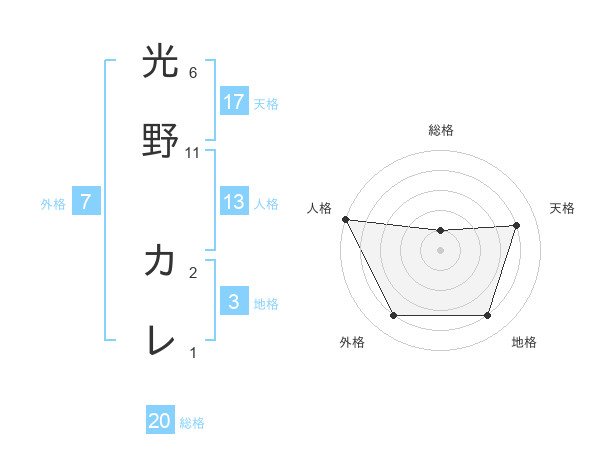光野 カレさんの天格は17画の4点!