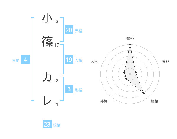 小篠 カレさんの総格は23画の5点!
