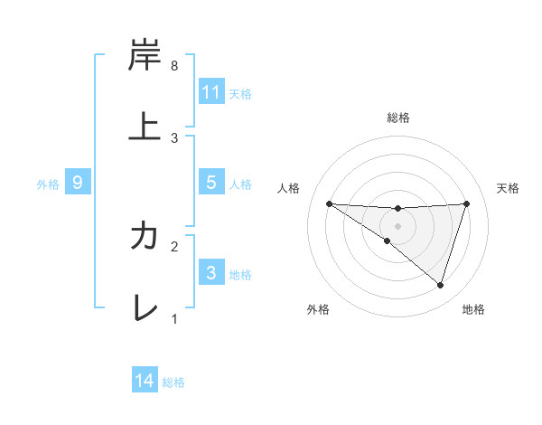 岸上 カレさんの地格は3画の4点!