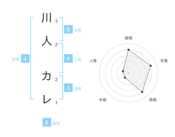 川人 カレさんの総格は8画の4点!