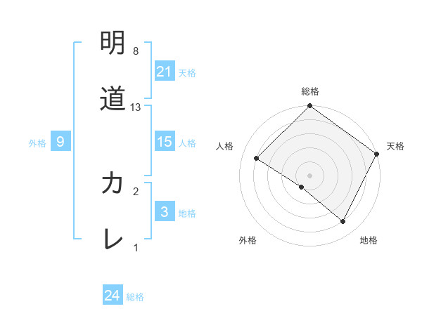 明道 カレさんの天格は21画の5点!