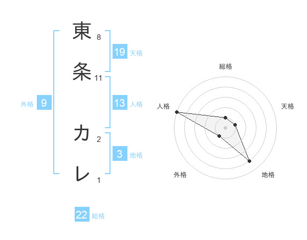 東条 カレさんの天格は19画の1点!