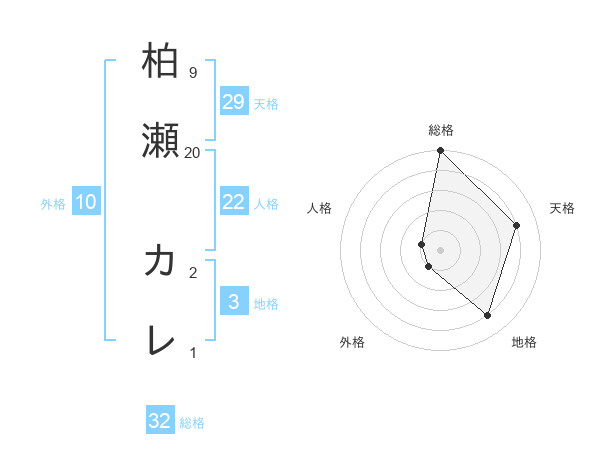 柏瀬 カレさんの総格は32画の5点!