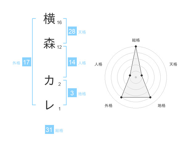 横森 カレさんの総格は31画の5点!