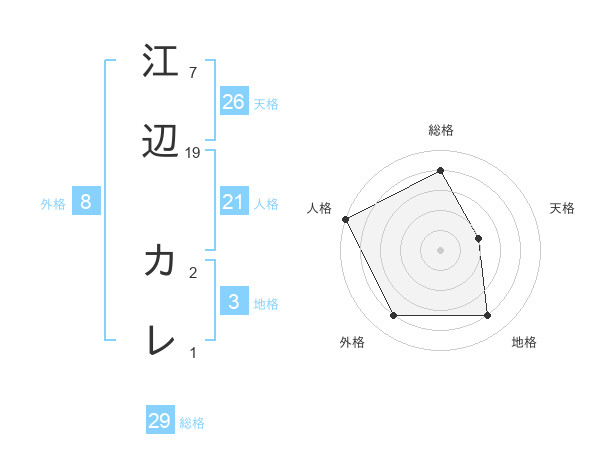 江辺 カレさんの総格は29画の4点!