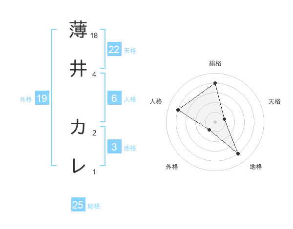 薄井 カレさんの天格は22画の1点!