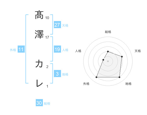 髙澤 カレさんの天格は27画の3点!