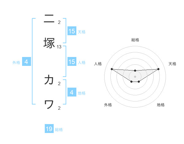 二塚 カワさんの天格は15画の4点!