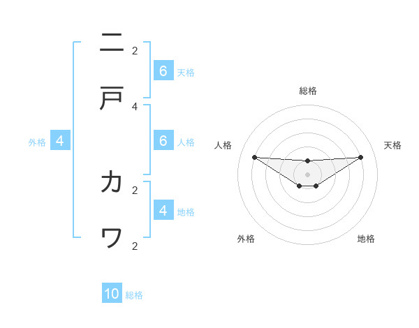 二戸 カワさんの天格は6画の4点!