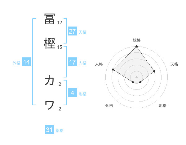 冨樫 カワさんの総格は31画の5点!