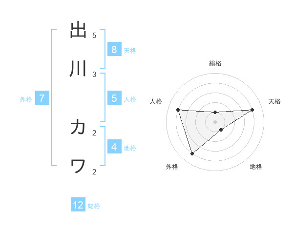 出川 カワさんの天格は8画の4点!