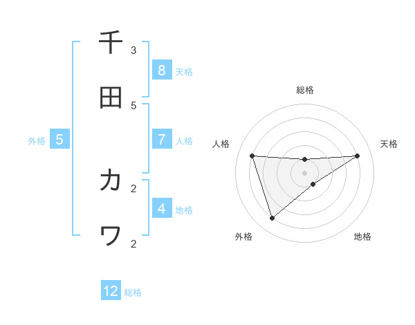 千田 カワさんの天格は8画の4点!