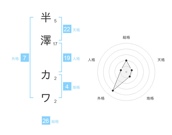 半澤 カワさんの外格は7画の4点!