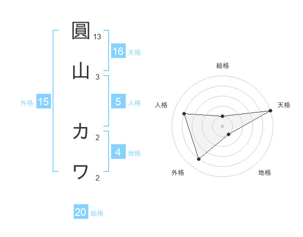 圓山 カワさんの総格は20画の1点!