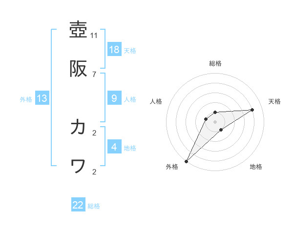 壺阪 カワさんの総格は22画の1点!
