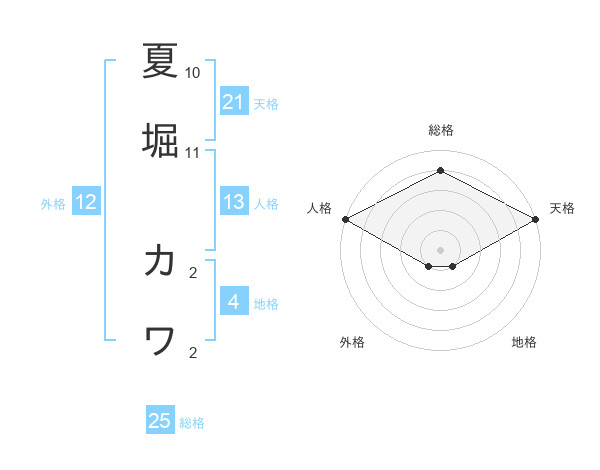 夏堀 カワさんの総格は25画の4点!