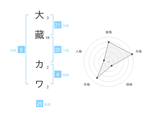 大藏 カワさんの天格は21画の5点!