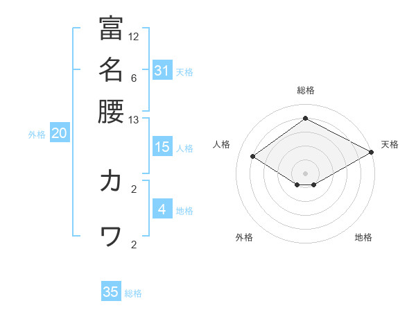 富名腰 カワさんの天格は31画の5点!