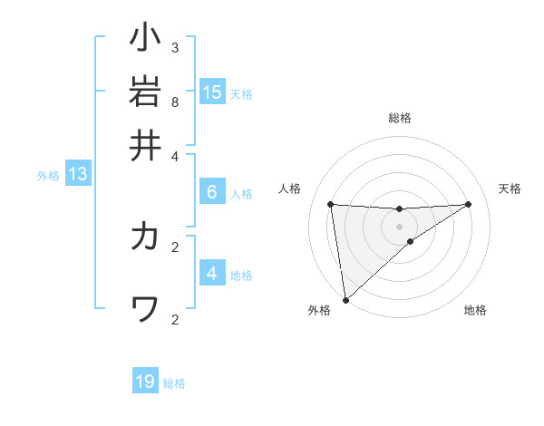小岩井 カワさんを姓名の画数から五運を鑑定