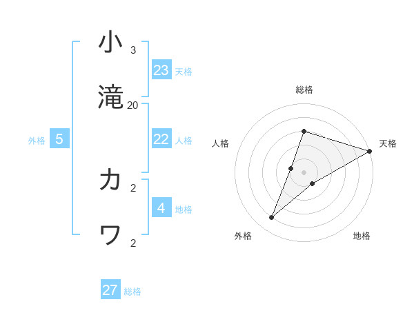 小滝 カワさんの総格は27画の3点!