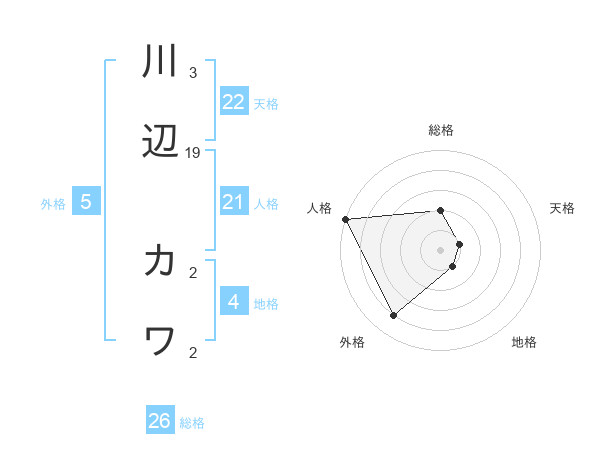 川辺 カワさんの外格は5画の4点!