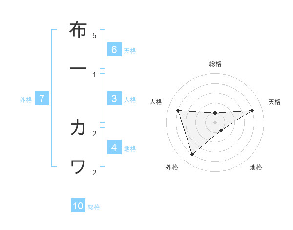布一 カワさんの総格は10画の1点!