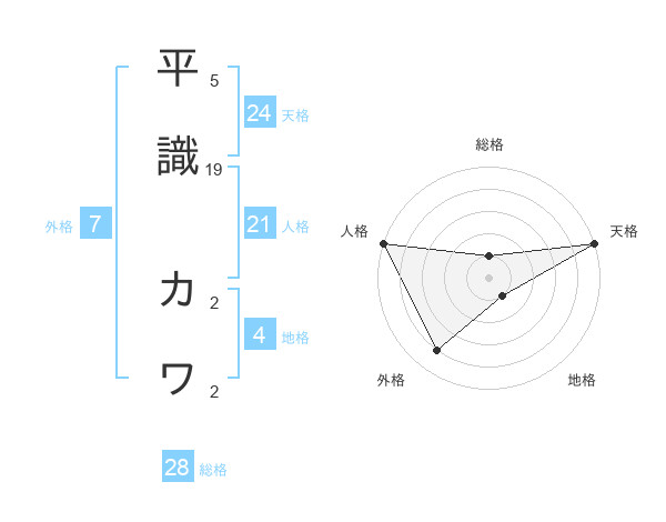 平識 カワさんの天格は24画の5点!
