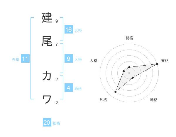 建尾 カワさんの総格は20画の1点!