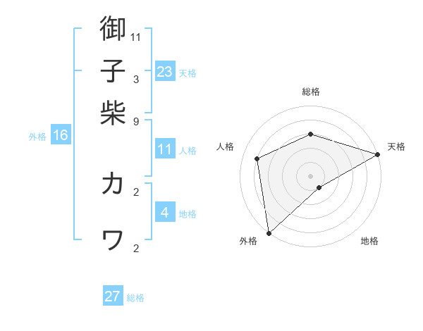 御子柴 カワさんを姓名の画数から五運を鑑定