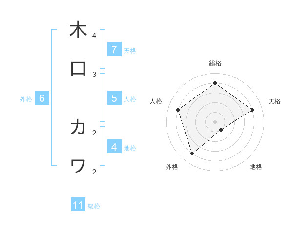 木口 カワさんの総格は11画の4点!
