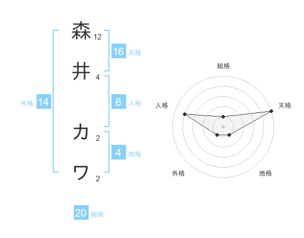 森井 カワさんの総格は20画の1点!