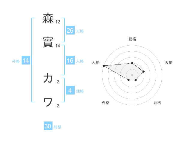 森實 カワさんの総格は30画の2点!