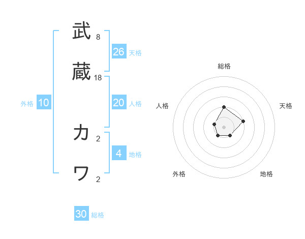 武蔵 カワさんを姓名の画数から五運を鑑定