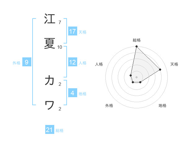 江夏 カワさんの総格は21画の5点!