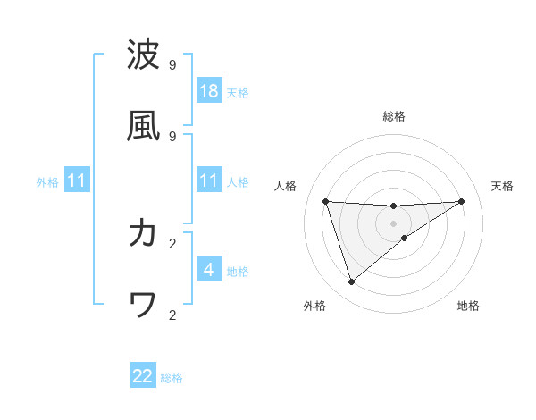 波風 カワさんの天格は18画の4点!