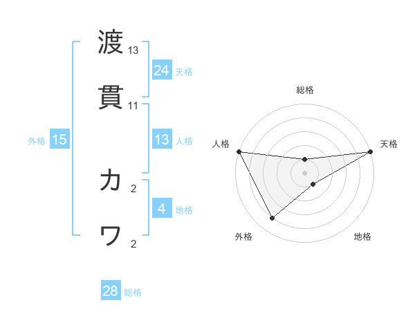 渡貫 カワさんの天格は24画の5点!