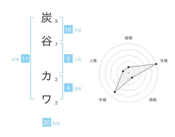 炭谷 カワさんの総格は20画の1点!