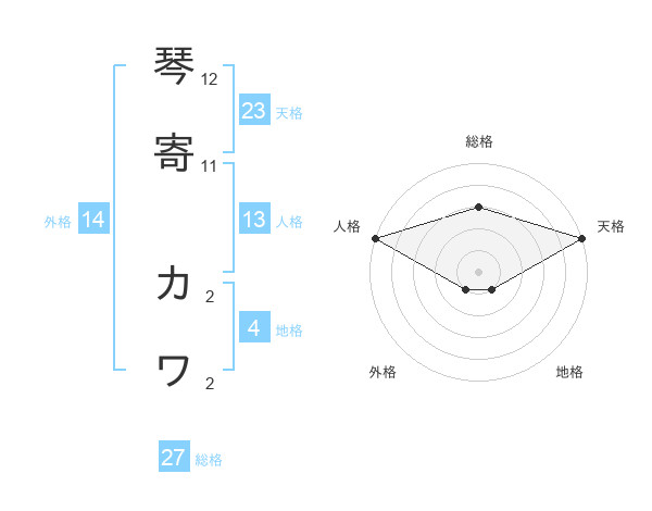 琴寄 カワさんの総格は27画の3点!