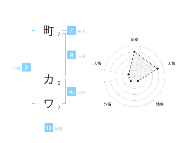 町 カワさんの総格は11画の4点!