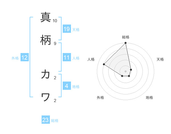 真柄 カワさんの総格は23画の5点!