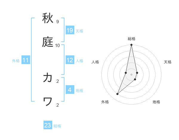 秋庭 カワさんの総格は23画の5点!