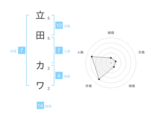 立田 カワさんの外格は7画の4点!