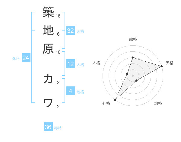 築地原 カワさんの総格は36画の3点!