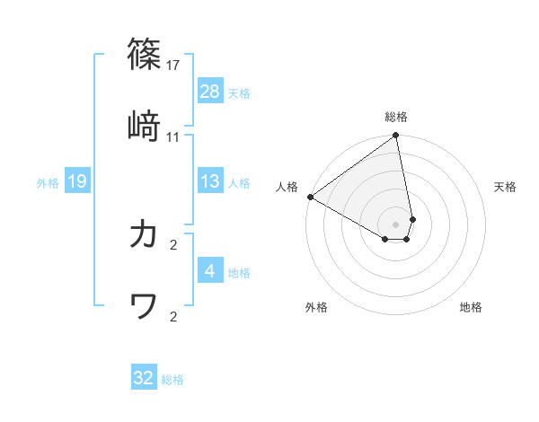 篠﨑 カワさんの総格は32画の5点!