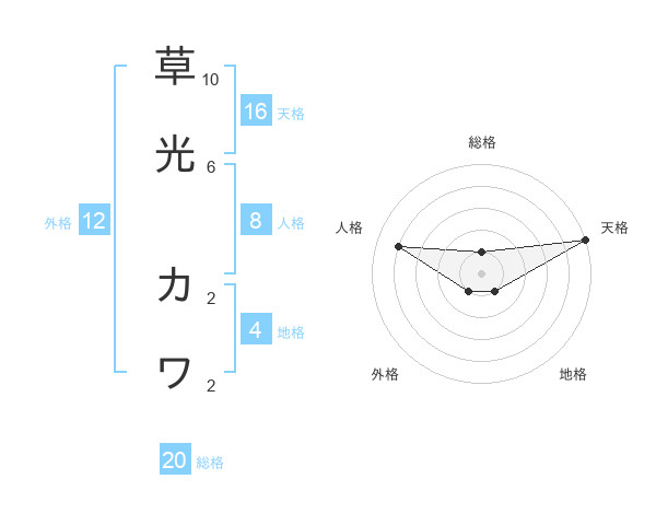 草光 カワさんの天格は16画の5点!