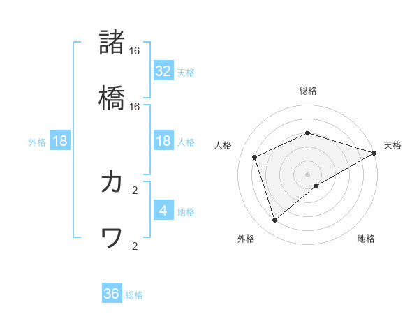 諸橋 カワさんを姓名の画数から五運を鑑定