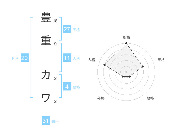 豊重 カワさんの総格は31画の5点!