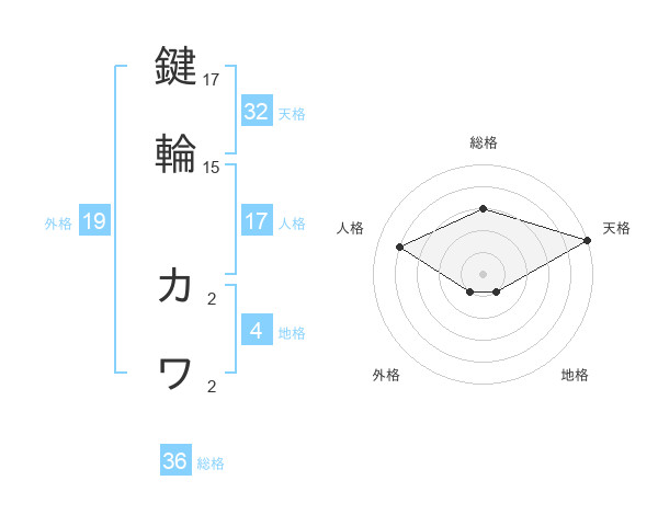 鍵輪 カワさんを姓名の画数から五運を鑑定